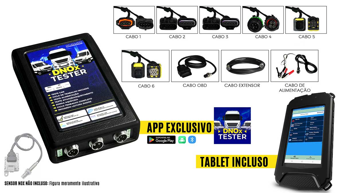 Equipamento 12V (linha leve) ou 24V (linha pesada) com Tablet – Diagnóstico Completo do Sistema Arla 32 e Sensores NOx