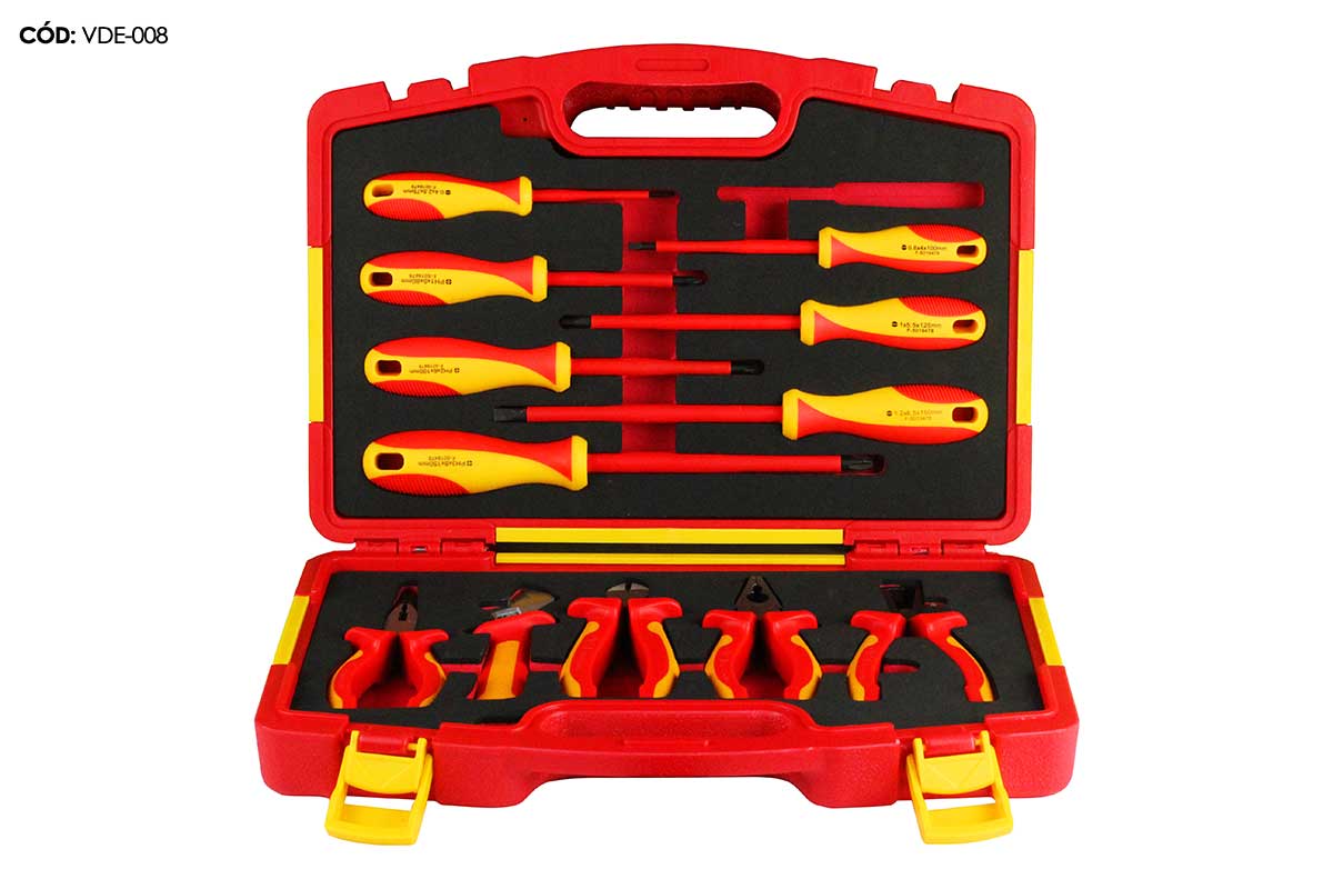 VDE-008/I Jogo de Ferramentas Manuais Isoladas VDE 1000V – 12 Peças com Estojo PVC