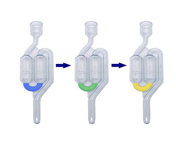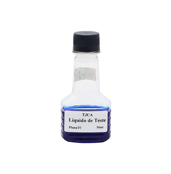 O teste é realizado por meio da mudança de cor do reagente, após o uso do aparelho acoplado ao reservatório de expansão com os adaptadores inclusos.